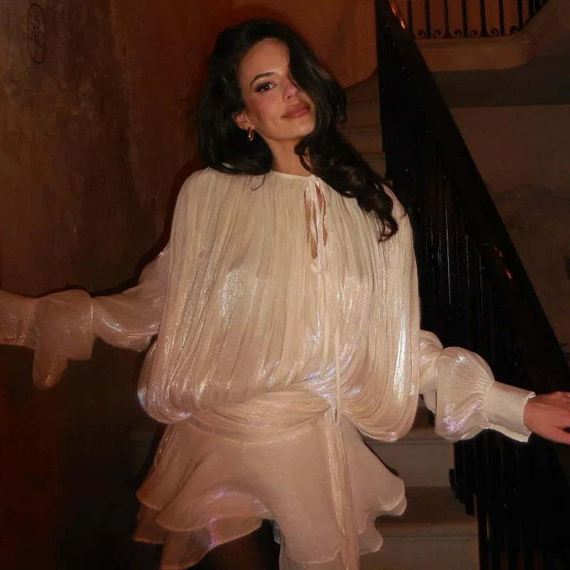 Elevate your wardrobe with this chic solid-color two-piece set in a soft apricot shade. Designed with elegant puff long sleeves, it combines sophistication and comfort for a feminine look that stands out. The matching shorts add a modern and versatile touch, making it perfect for both casual outings and stylish occasions. Crafted from high-quality polyester, this outfit ensures durability and all-day comfort. Available in sizes S to XL, it’s a must-have for women who love effortless elegance.